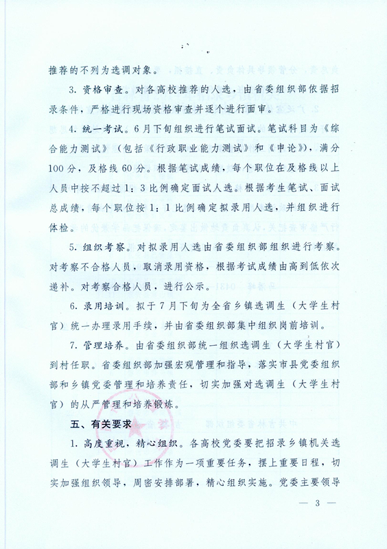 关于面向省内高校优秀毕业生招录乡镇机关选调生的通知