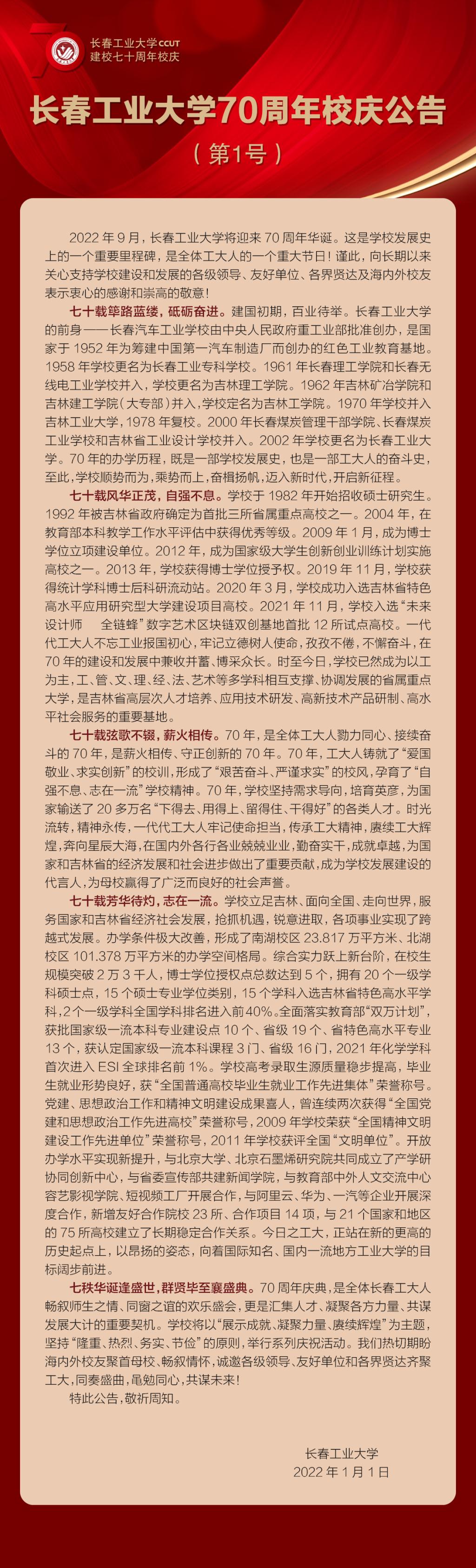 新葡萄AMG官方网站70周年校庆公告 (第1号)