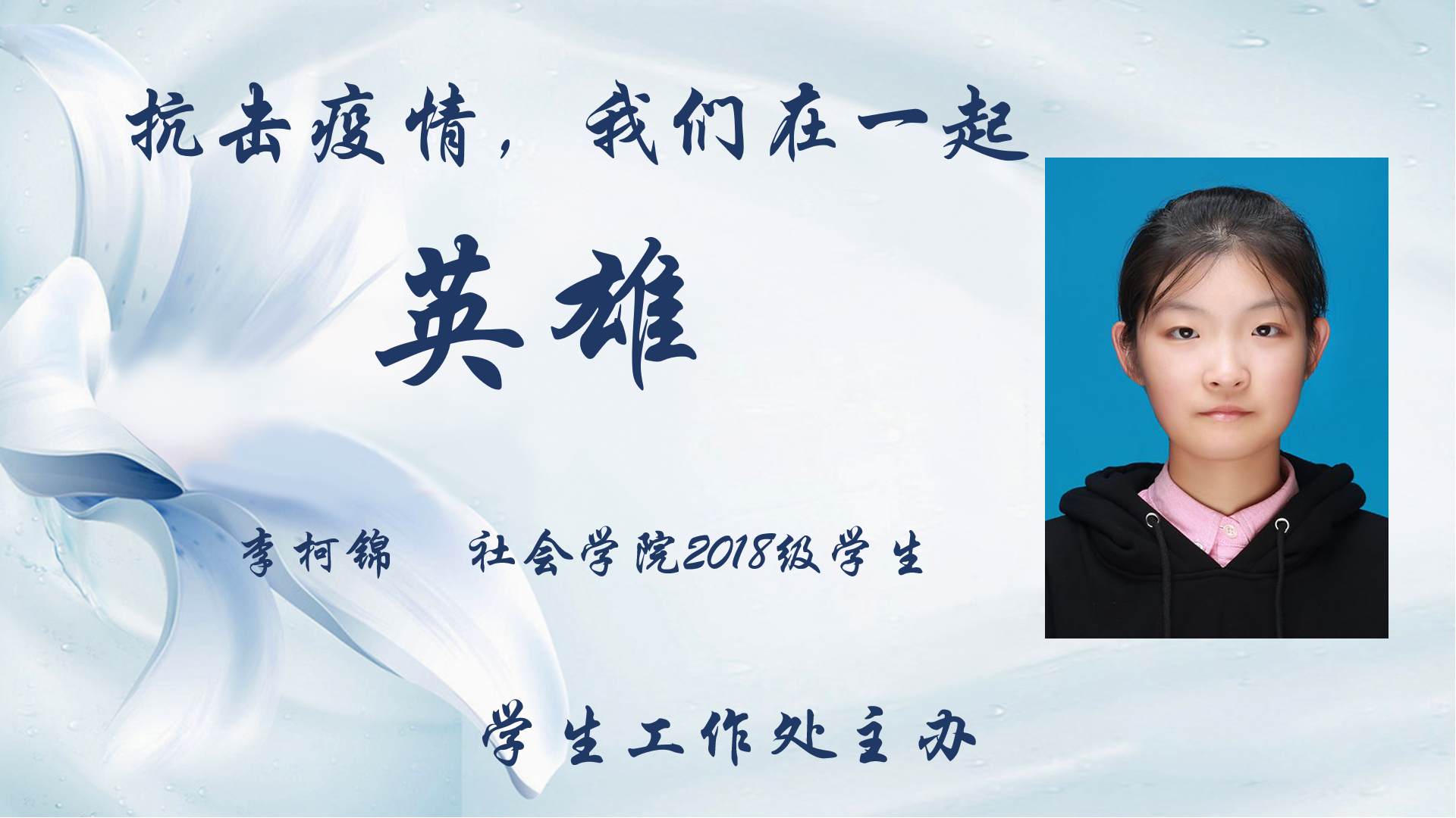 李柯锦,万象城awc官网登录入口2018级学生 。担任2019-2020学年万象城awc官网登录入口青年志愿者协会会长,曾获我校2018年“美丽中国,感动瞬间”演讲比赛优秀奖,我校2019年青年志愿服务大赛团体铜奖。