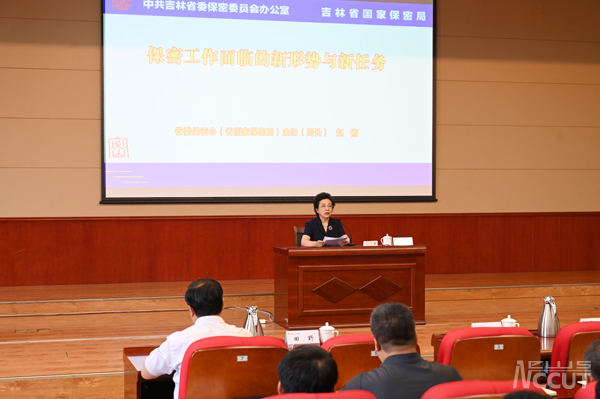 省委保密委员会副主任、省委保密委员会办公室主任、省国家保密局局长、学校优秀校友赵楠,以“保密工作面临的新形势与新任务”为题,运用鲜活而生动的事例,为全体参训人员讲授了一堂震撼人心的保密专题报告。