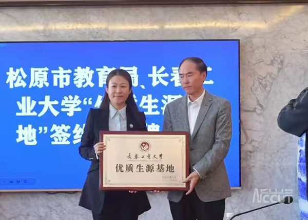 学校为松原市实验高级中学授予优质生源基地牌匾
