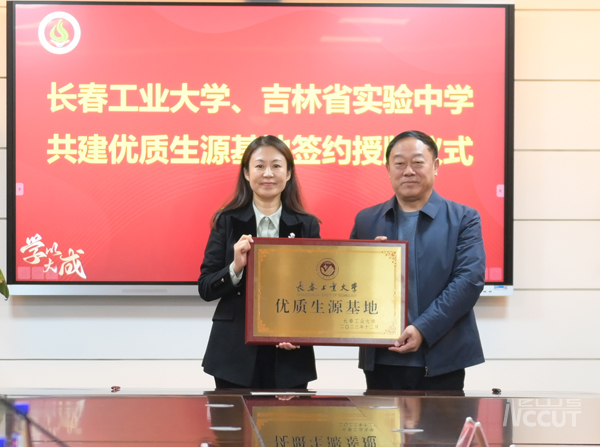 仪式上,李东玲向与会人员详细介绍了学校的校史、学科专业设置、人才培养特色、就业去向、优秀校友以及近年来在吉林省实验中学的招生录取情况,并对吉林省实验中学近年来在高考中取得的喜人成绩表示祝贺,向长期以来热情关心、大力支持学校发展的吉林省实验中学各位领导表示衷心的感谢。李东玲指出,优质生源基地是衔接基础教育“基点”与高等教育“龙头”的桥梁纽带,是充分发挥各级教育的结构性优势,加快推进教育现代化,建设高质量教育体系的重要战略支点。在当前大力推进教育强省建设和吉林省即将实行“新高考”的大背景下,优质生源基地的成立恰逢其时、意义重大。吉林省实验中学的教育事业发展取得了令人瞩目的成就,作为吉林省首批办好的省级示范性重点中学,多年来桃李芬芳、英才辈出,每年亦有众多优秀学子在新葡萄AMG官方网站成长成才。李东玲表示,学校将为生源基地提供名师进中学、工业创新体验营、职业生涯规划体验周、重点实验室参观等资源支持,让学生们接触到最新的研究成果和学科发展动态,助力基地的思想政治教育、科学教育和生涯教育,以新方法、新模式、新路径,与吉林省实验中学同题共答、携手并进提高人才培养质量,希望更多省实验师生来到新葡萄参观研学,欢迎越来越多优秀学子来到新葡萄学习深造。