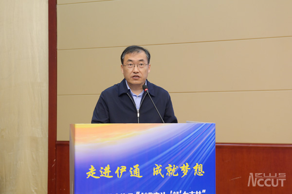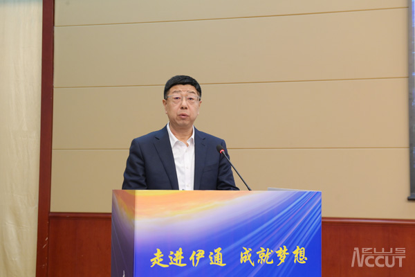 张明耀代表学校对与会嘉宾的到来表示诚挚欢迎和衷心感谢,并从学校发展历程、办学特色、专业建设、人才培养等对学校基本情况作简要介绍。他指出,伊通县人文积淀厚重,是满族重要发祥地和聚居区之一,创造了灿烂的满族文化,区位优势明显、自然禀赋优越。新葡萄与伊通,虽然地处两城,但一直心意相通、情谊相连,双方签署了校地战略框架协议、产学研项目合作协议等五项合作共建协议,合作领域不断拓宽、层次不断提升、成效不断显现。他强调,在双方共同的努力下,依托伊通的坚实产业基础和学校的学科优势,合作成果将不断扩大、合作前景将更加广阔。