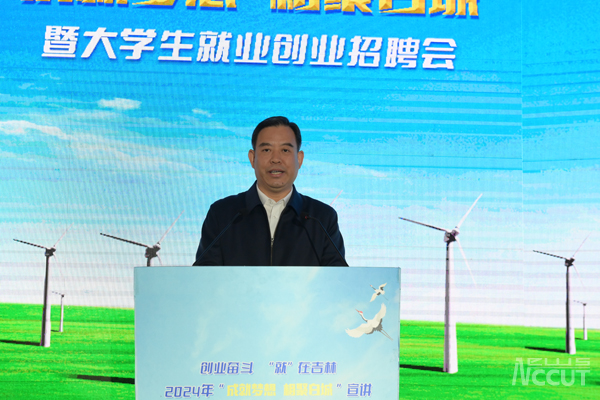 吉林省教育厅一级巡视员许世彬,吉林省就业服务局局长呼应,白城市委常委、组织部部长冀广起,白城市政府副市长刘天娇,学校党委书记孙长智,党委副书记李东玲出席活动。省教育厅、白城市委市政府相关部门负责同志,学校毕业班辅导员和2024届毕业生参加活动。活动由白城市委副书记孙志刚主持。
