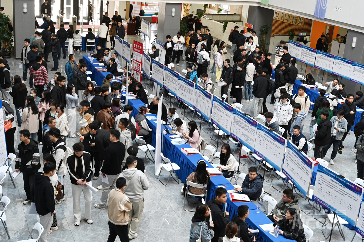 现场气氛热烈,人头攒动,毕业生积极与企业招聘人员交流、投递简历,介绍自身专业能力和岗位期望,用人单位查阅毕业生简历的同时,向同学们详细介绍公司概况、岗位职责、薪资待遇,使同学们能够更全面地了解求职信息,准确定位自身与岗位适配情况。