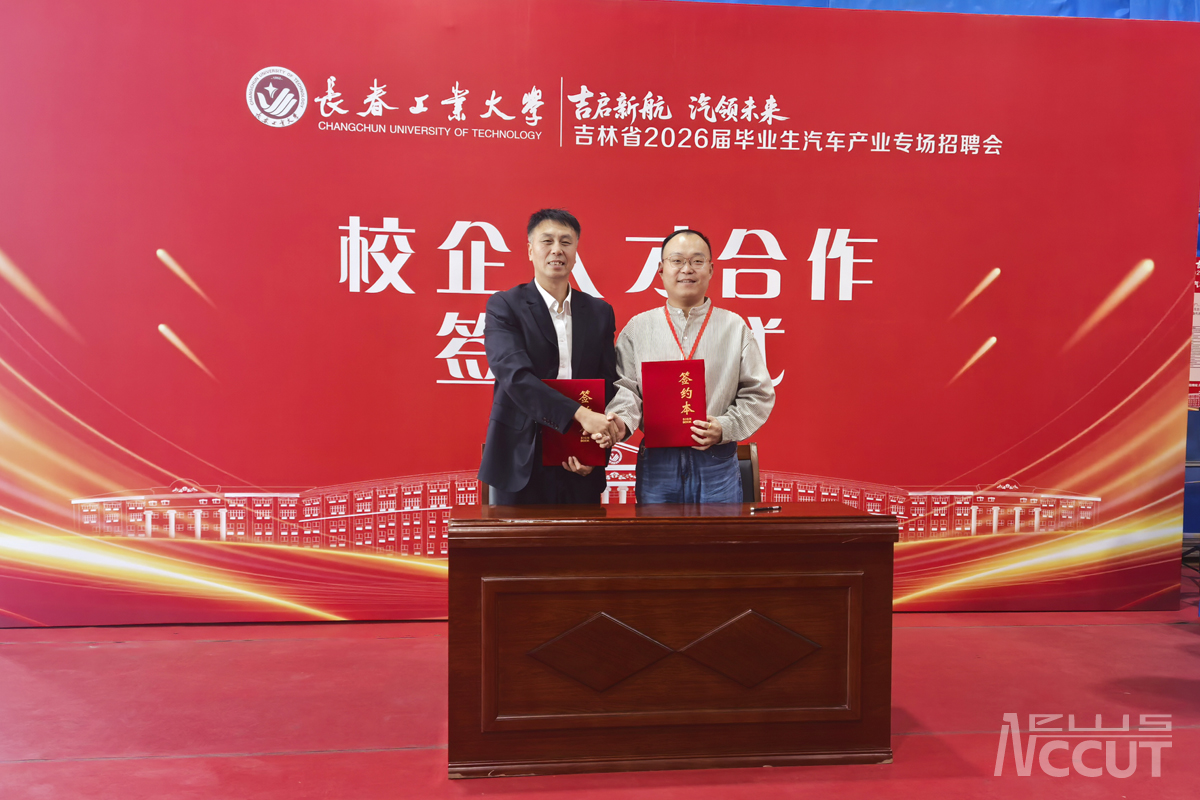 招生就业处处长付宏波代表学校分别与浙江吉利控股集团有限公司、大陆汽车电子(长春)有限公司、长春市灯泡电线有限公司等多家企业签订校企合作协议,与企业建立紧密联系,进一步拓宽了毕业生就业市场。